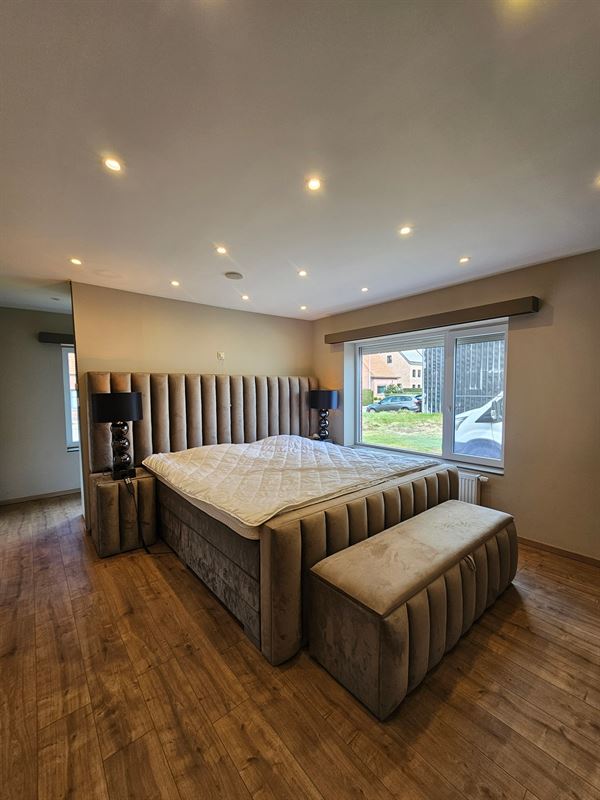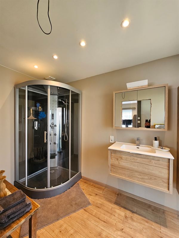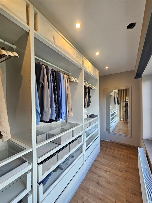 1slaapkamer (rolluiken aanwezig) met aansluitend de dressing en badkamer met inloopdouche, lavabomeubel en toilet.
