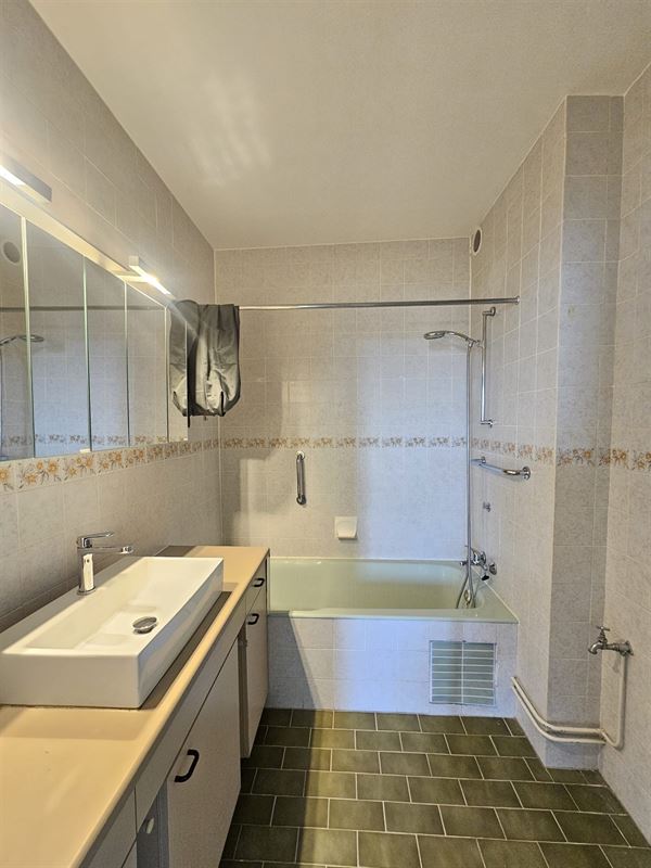 Het appartement beschikt over een inkomhal met ingebouwde kast, een ruime leefruimte met veel lichtinval, een praktische keuken (met o.a. kookplaat, dampkap, vaatwasmachine), een badkamer met lavabo en ligbad (met douche) en aansluitingen voor wasmachine en droogkast, twee slaapkamers en een ruim terras. U heeft toegang tot het terras vanuit de leefruimte, de keuken en de twee slaapkamers. Er is ook een kelder.